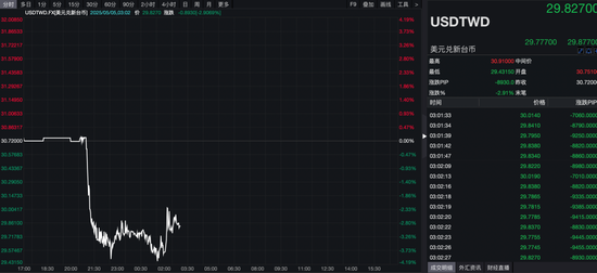新台币表现最为猛烈。美元兑新台币最低跌超4%,跌破30关口,为2023年2月以来的最高水平,也为连续第六个交易日上涨。值得注意的是,美元兑新台币盘中4%的跌幅也创下1988年以来的最大跌幅。今年以来,美元兑新台币跌幅已经超过9%。